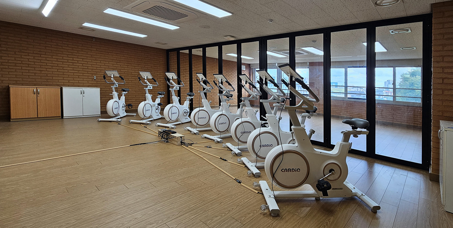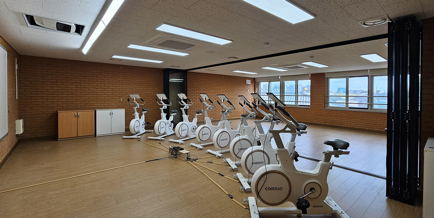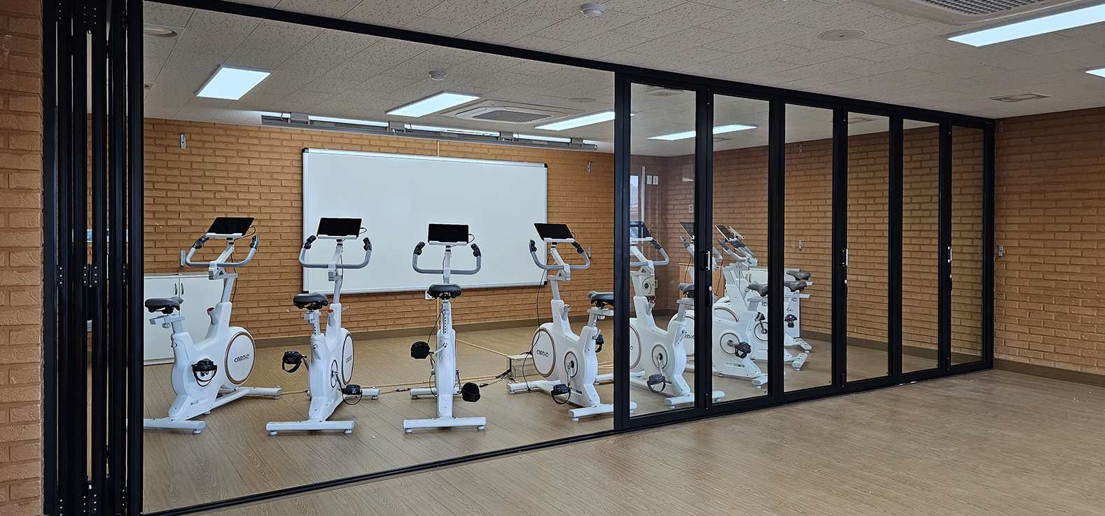 슬림한 프레임 설계를 적용해 개방감을 확보하면서도 공간 구분 기능을 동시에 만족시키고 있으며, 스피닝 수업과 그룹 운동 등 다양한 체육 활동에 적합한 환경을 제공합니다.
