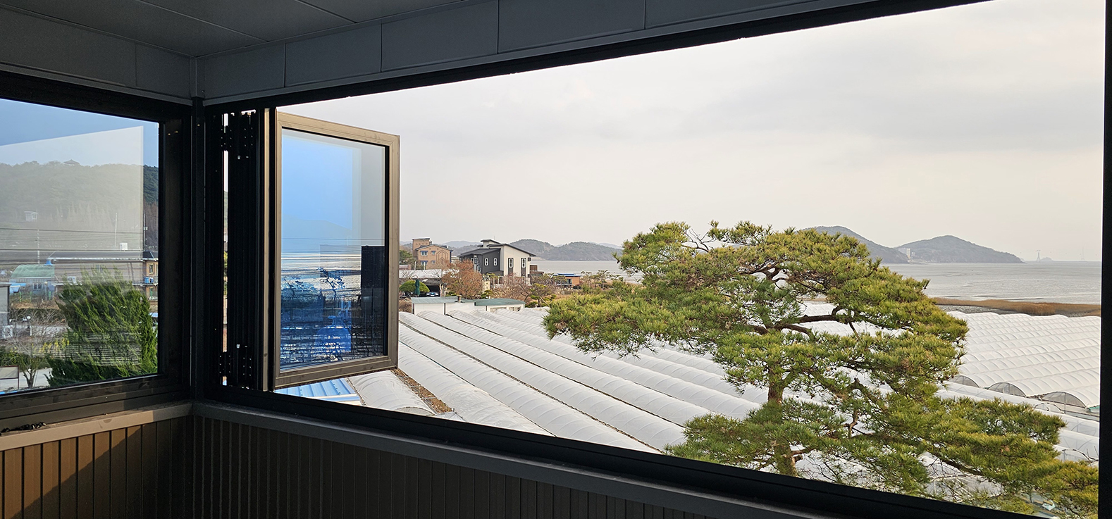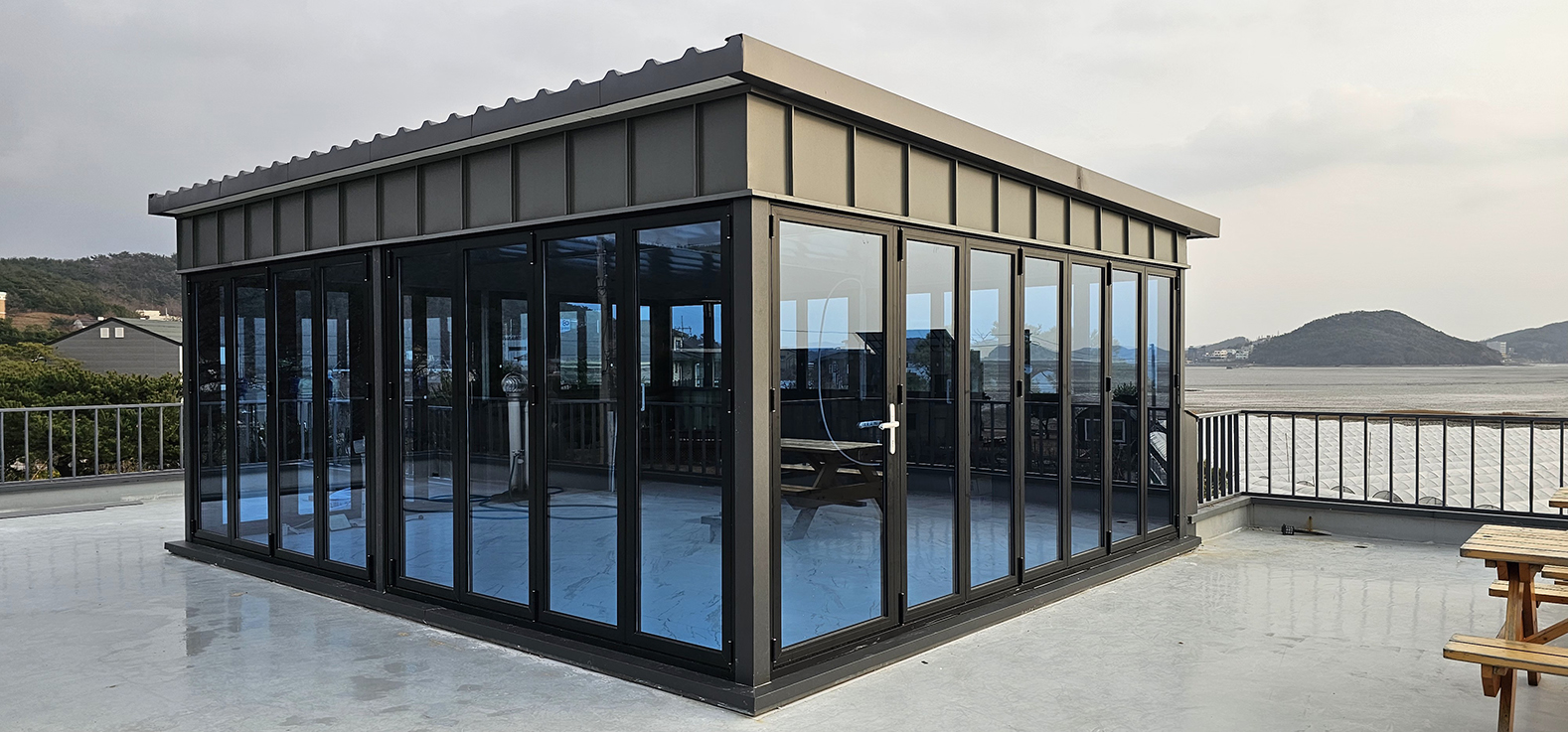 안산 대부도 전원주택 옥상에 썬큰 폴딩도어를 시공한 사례입니다. 기존에는 아무것도 없는 넓은 옥상 공간이었지만, 폴딩도어 설치를 통해 외부와 분리된 독립적인 공간으로 탈바꿈했습니다. 필요에 따라 완전히 개방하거나 닫아 사용할 수 있어 활용도가 크게 높아졌으며, 실용성과 디자인을 동시에 갖춘 공간으로 완성되었습니다.