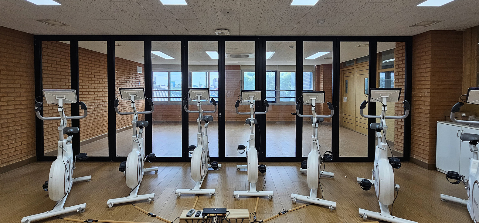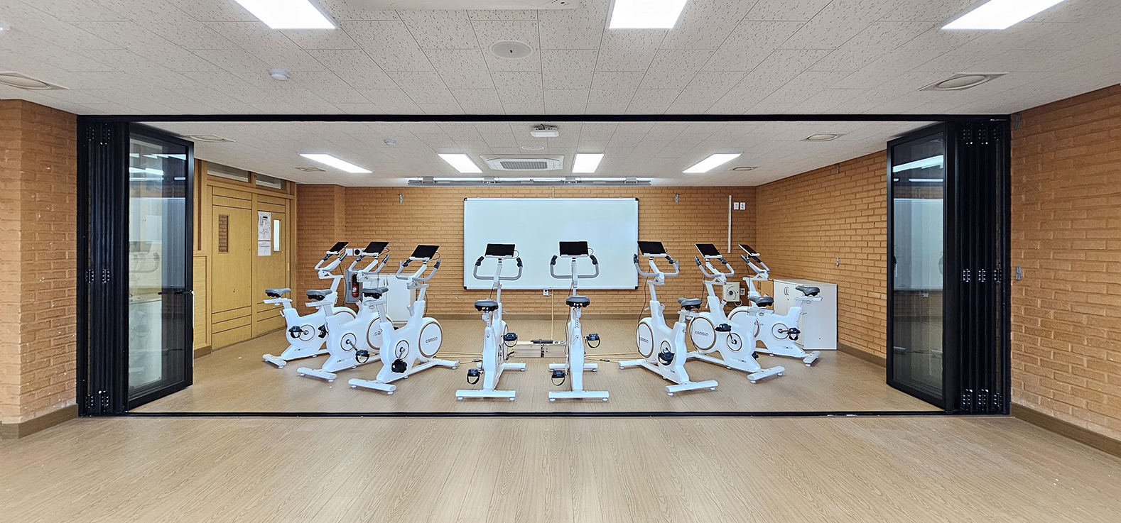 슬림한 프레임 설계를 적용해 개방감을 확보하면서도 공간 구분 기능을 동시에 만족시키고 있으며, 스피닝 수업과 그룹 운동 등 다양한 체육 활동에 적합한 환경을 제공합니다.