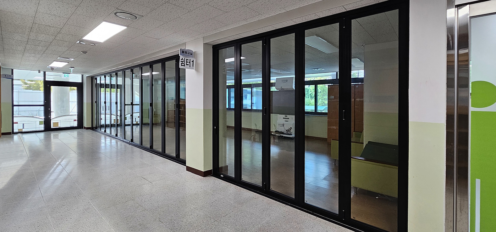 또한 부드러운 개폐 성능과 기밀성을 확보하여 쾌적한 실내 환경을 유지할 수 있도록 했으며, 공간을 상황에 맞게 분리·확장할 수 있어 방과후 프로그램 운영 효율성을 높였습니다.