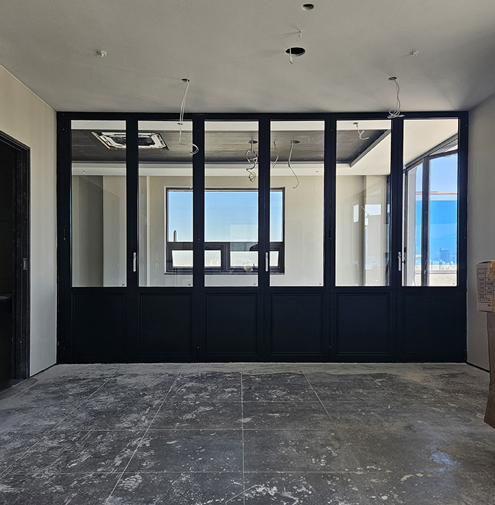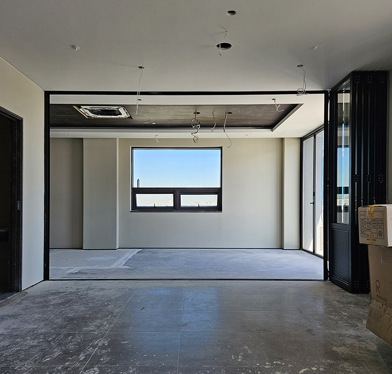 이번 시공은 공간의 개방감과 활용도를 높이기 위해 적용되었으며, 필요에 따라 공간을 유연하게 분리하고 확장할 수 있도록 설계되었습니다.